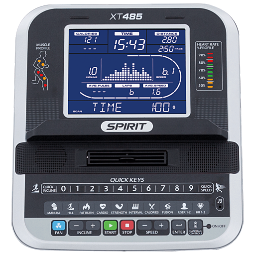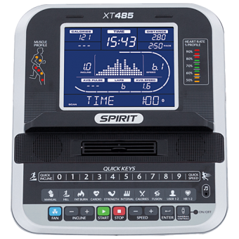 Беговая дорожка Spirit XT485 (2017) - абсолютный лидер на рынке для домашнего фитнеса имеет регулируемую скорость до 18 км/час и наклон до 15 уровней в сочетании с широким беговым полотном 152,5 х 56 см и мощностью мотором 4 л.с., благодаря которому тренажер работает устойчиво и равномерно, невзирая на высокую планку максимального пользователя. Spirit XT485 (2017) имеет 9'' LCD-дисплей с ярко голубой подсветкой, клавиши быстрого переключения скорости и угла наклона, беспроводное считывание сердечного ритма (кардиопояс в комплекте), встроенные в поручни клавиши переключения скорости и угла наклона, а также наличие профиля мышечной активности и профиля сердечного ритма. Беговая дорожка Spirit XT485 (2017) - это потрясающий спектр функций для интенсивных тренировок.